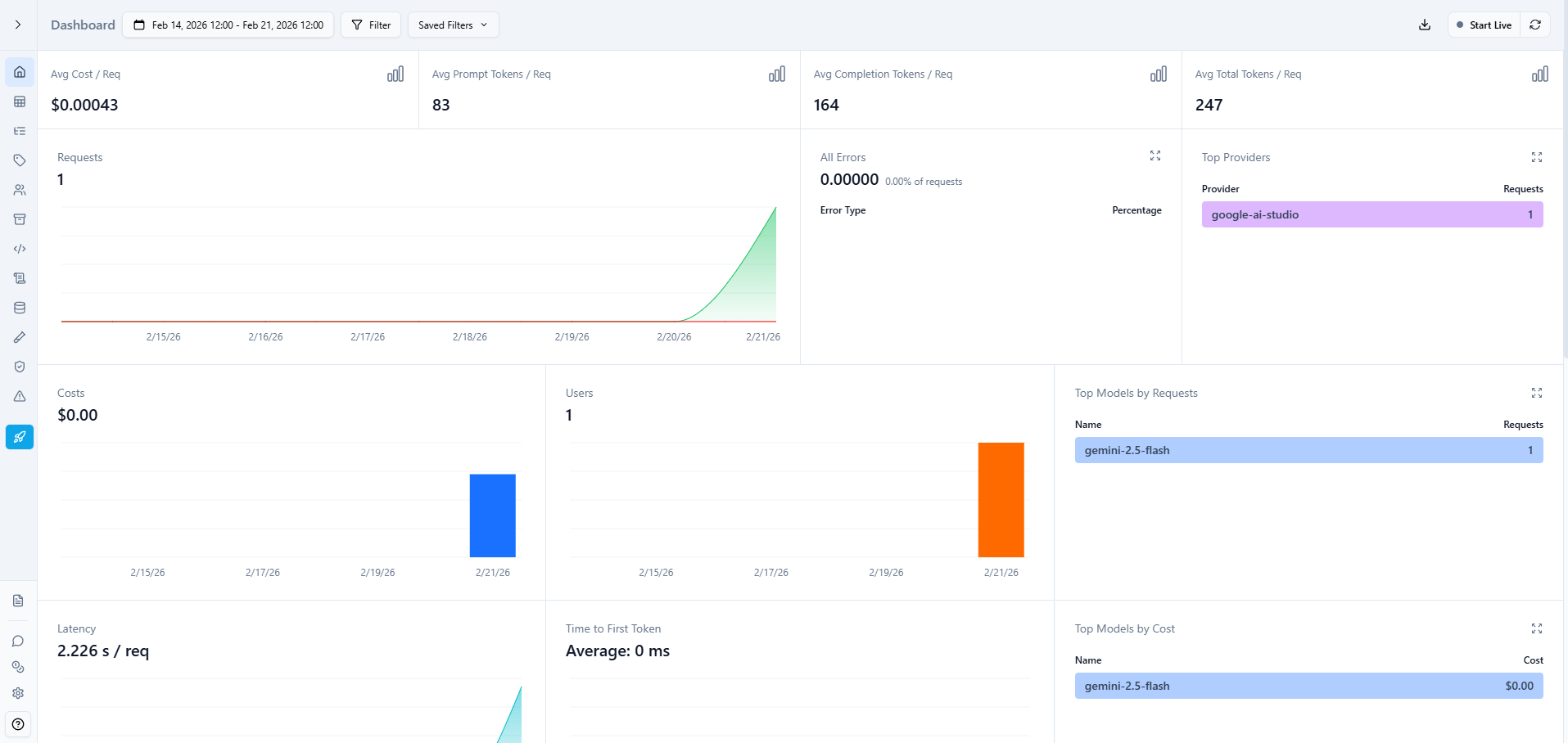 - Real-time cost tracking per request